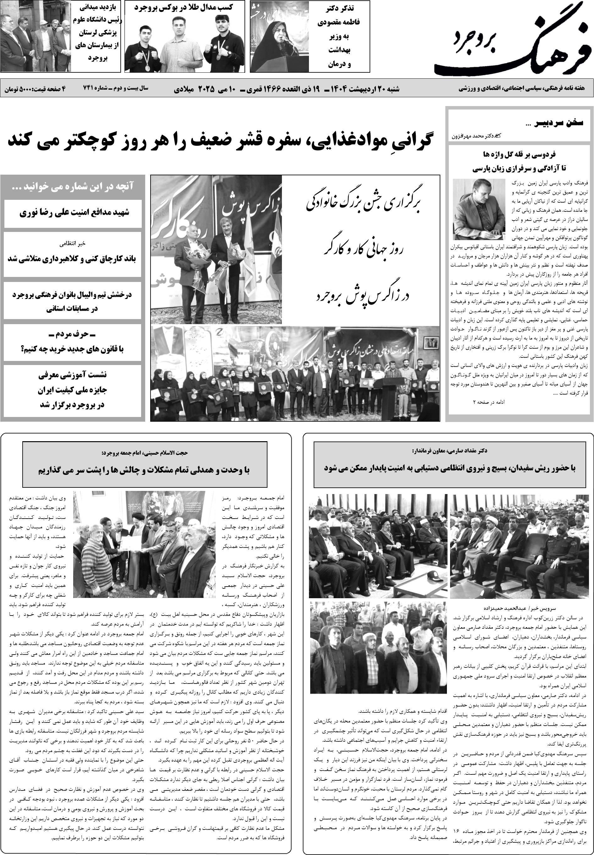 هفته نامه فرهنگ  بروجرد ـ صفحه اول ـ شماره 741 ـ تاریخ 20 اردیبهشت 1404
