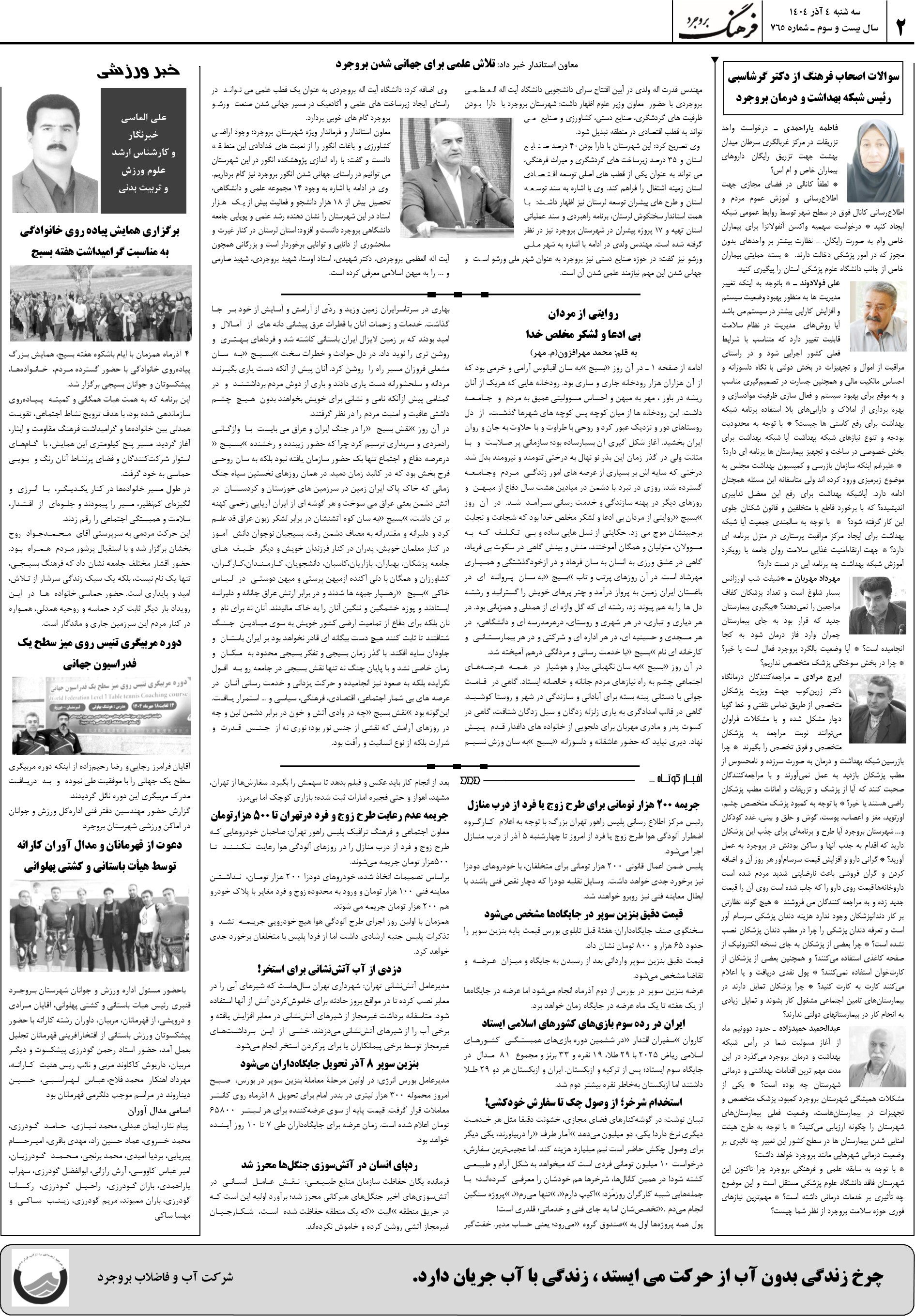 صفحه دوم نسخه چاپی 765 به تاریخ 4 آذر 1404