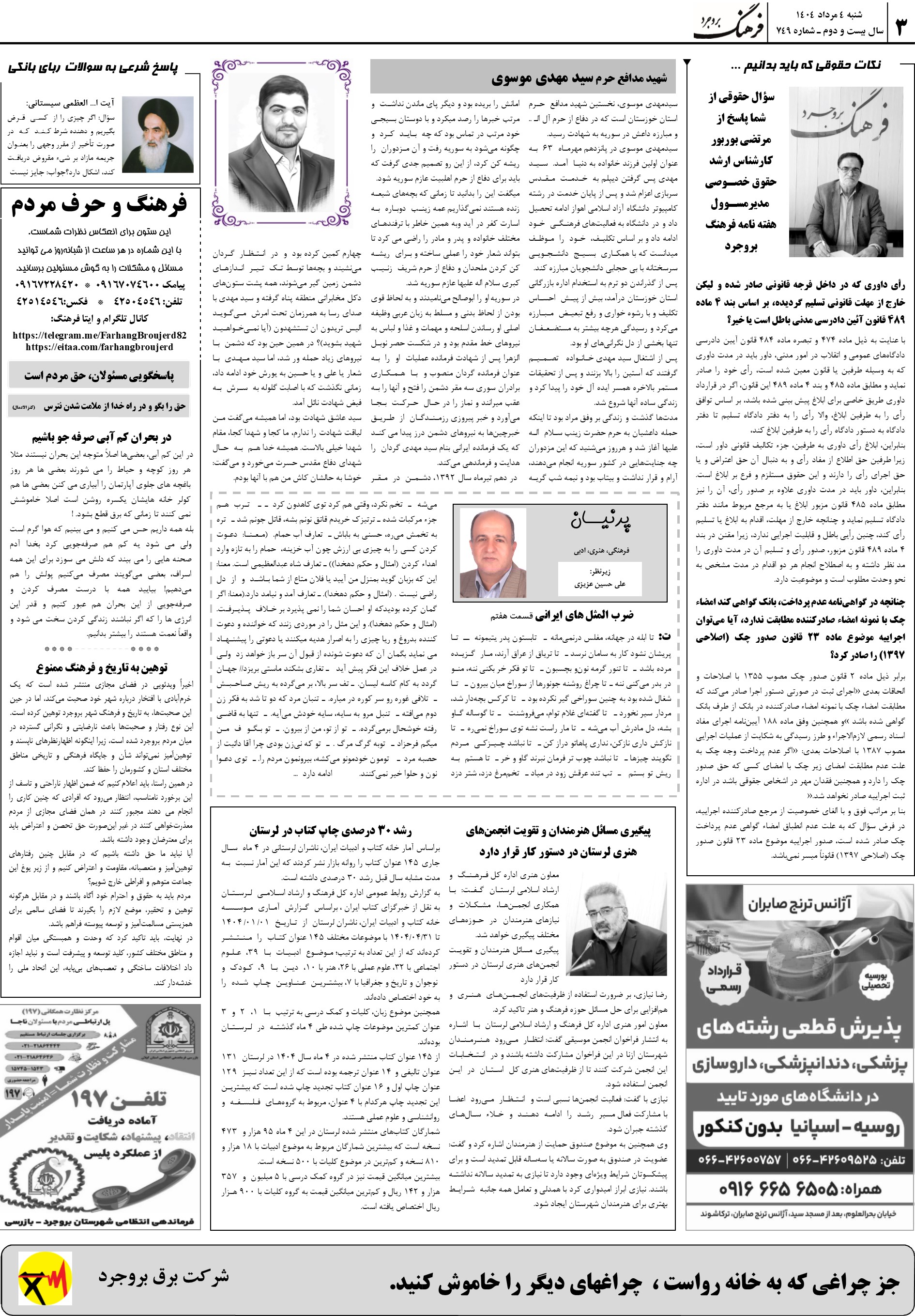 صفحه سوم نسخه چاپی 749 به تاریخ 4 مرداد 1404