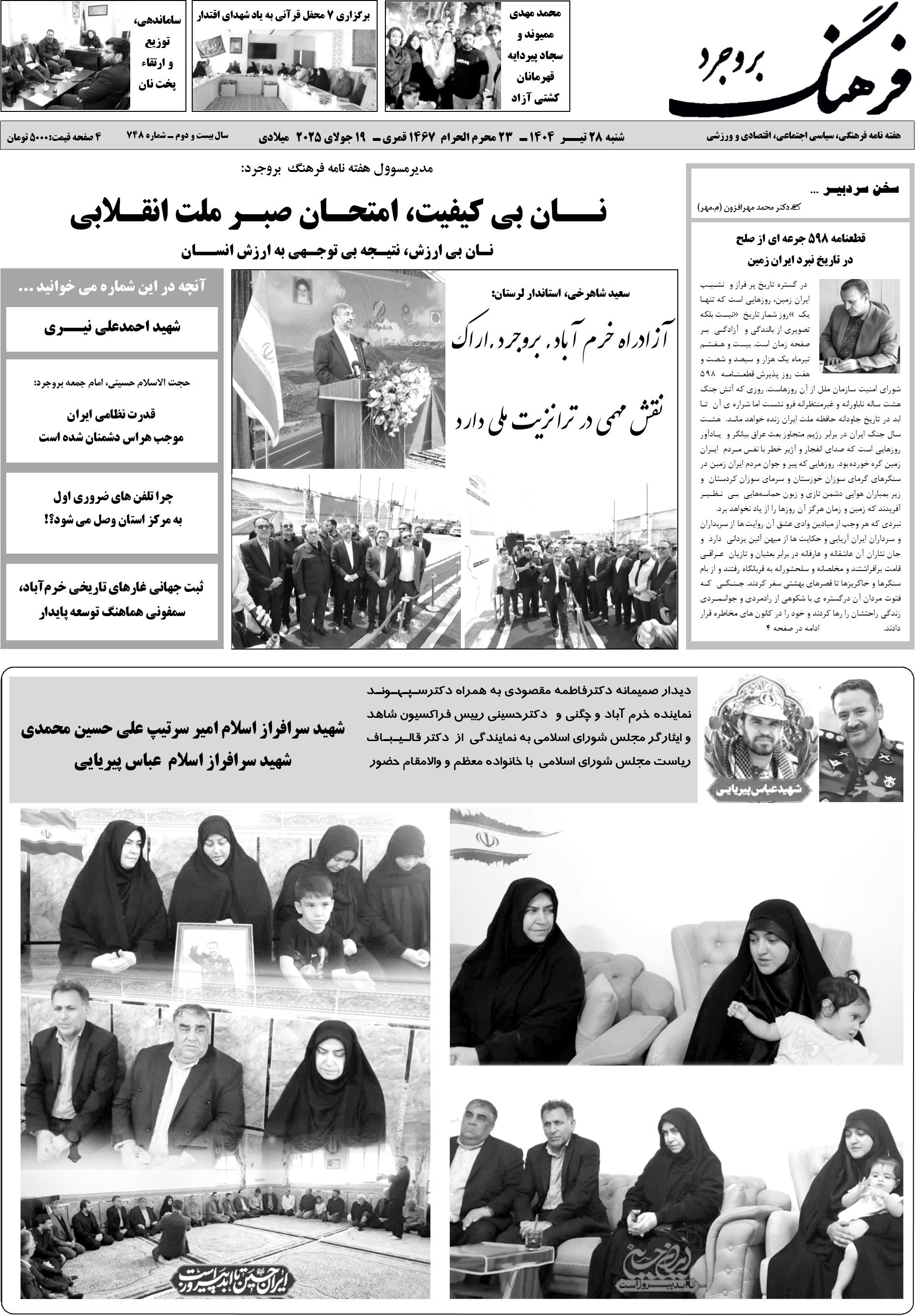 نسخه چاپی هفته نامه فرهنگ بروجرد