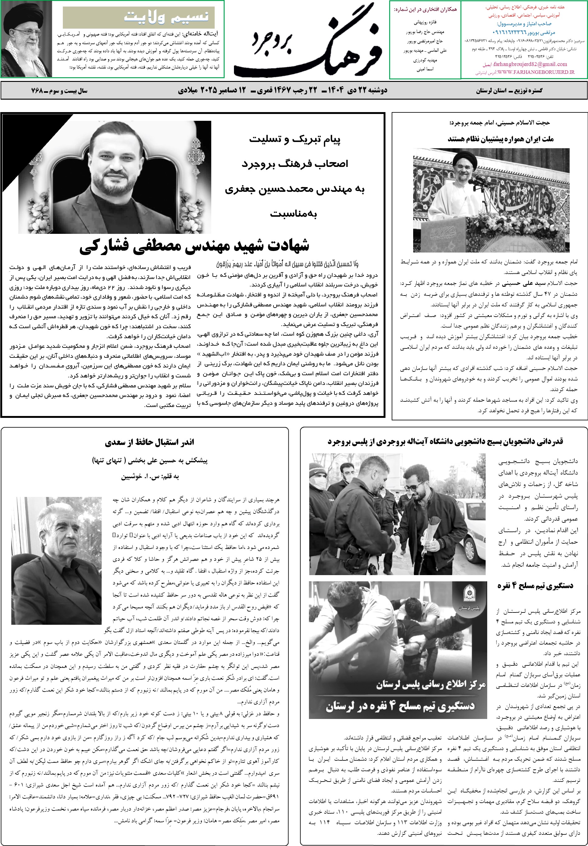 نسخه چاپی هفته نامه فرهنگ بروجرد